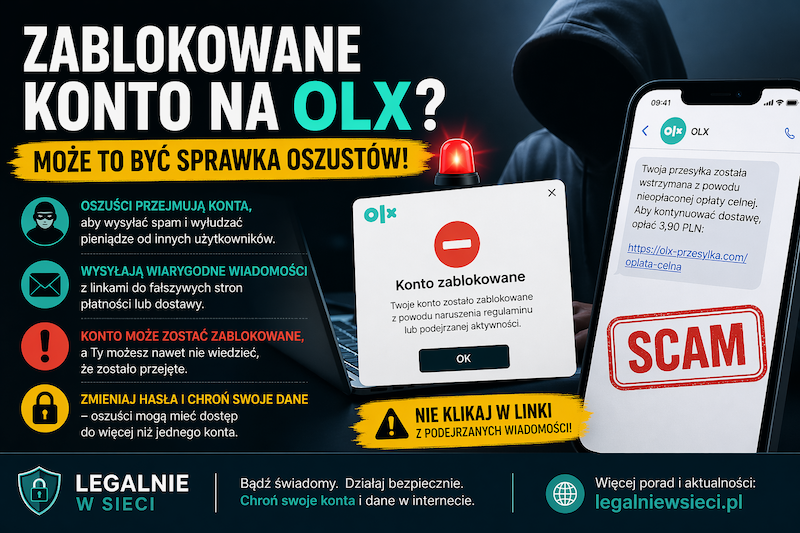 Nagła blokada konta w serwisie OLX może być dużym zaskoczeniem. Wielu użytkowników zakłada wtedy, że doszło do pomyłki albo naruszenia regulaminu. Tymczasem w części przypadków problem jest znacznie poważniejszy. Zablokowane konto może oznaczać, że zostało przejęte przez internetowych oszustów i wykorzystane do rozsyłania spamu lub prób wyłudzenia pieniędzy.